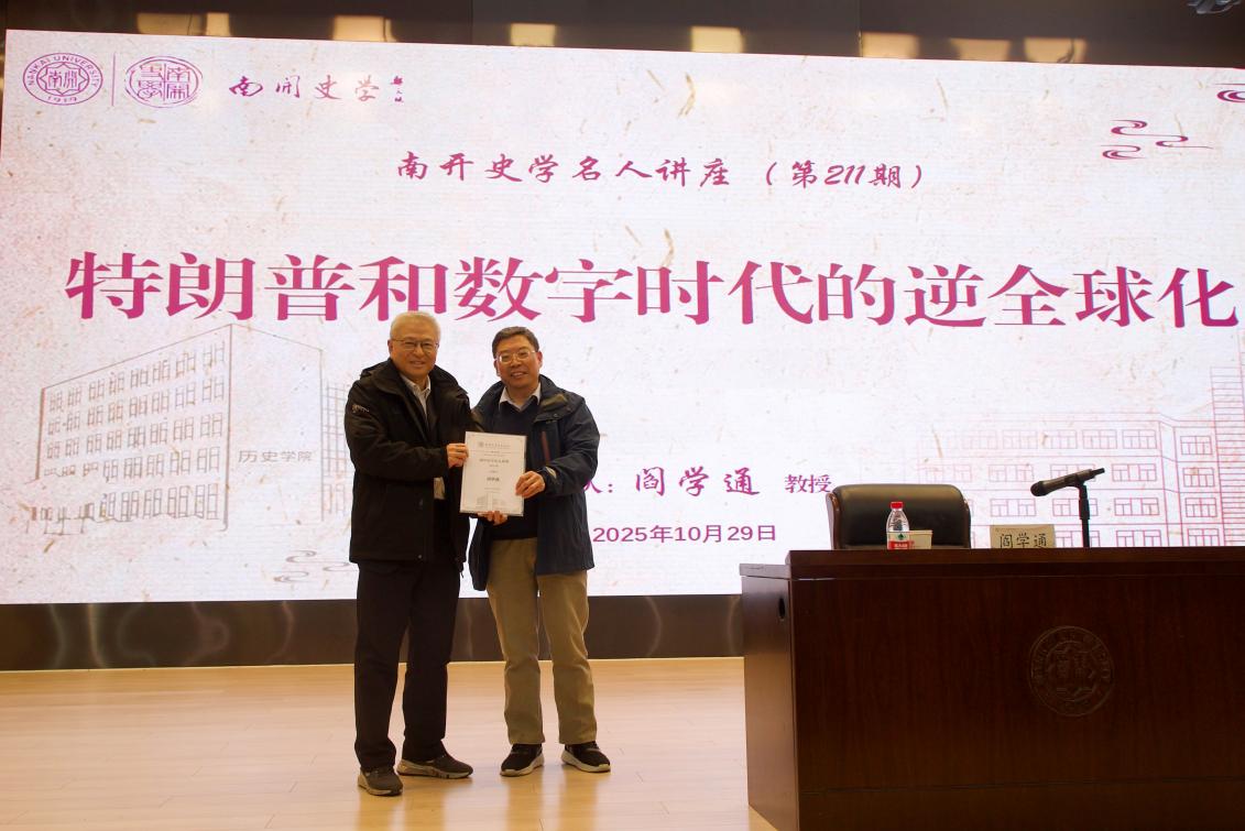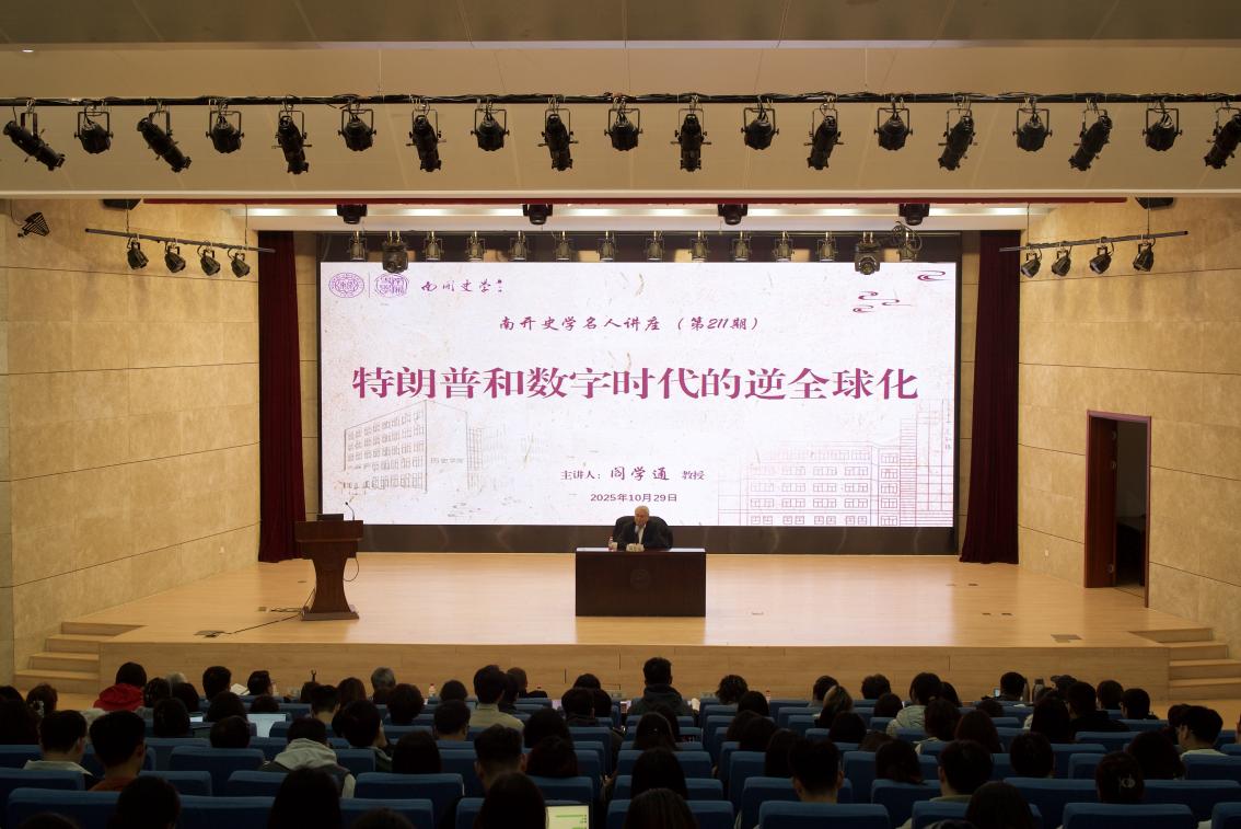 10月29日下午,南开史学名人讲座第211期在津南校区西楼报告厅圆满举行。本次讲座由清华大学国际关系研究院名誉院长、文科资深教授阎学通老师主讲,主题为“特朗普时代和数字时代的逆全球化”。南开大学历史学院副院长丁见民教授主持讲座,历史学院与南开大学周恩来政府管理学院300余名师生参与讲座。