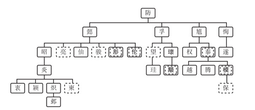 说明:①本图仅出示本文论及的诸王世系关系,并非所涉支系的全部人物。②虚线框为都督关中者,内虚外实框线者为有督邺城经历者。)