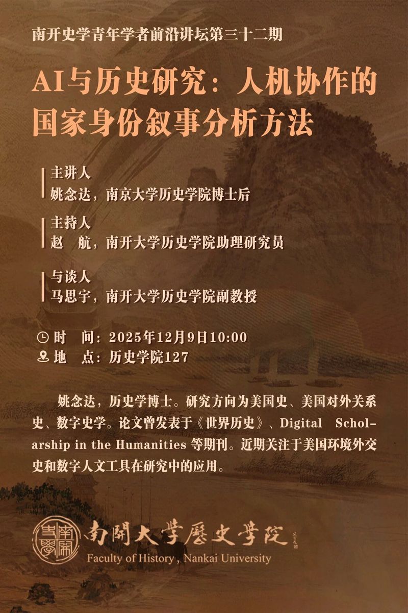 主讲人:姚念达,南京大学历史学院博士后