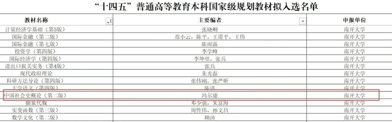 2026年1月19日,教育部公布“十四五”普通高等教育本科国家级规划教材名单,我院冯尔康教授主编的《中国社会史概论(第二版)》成功入选。
