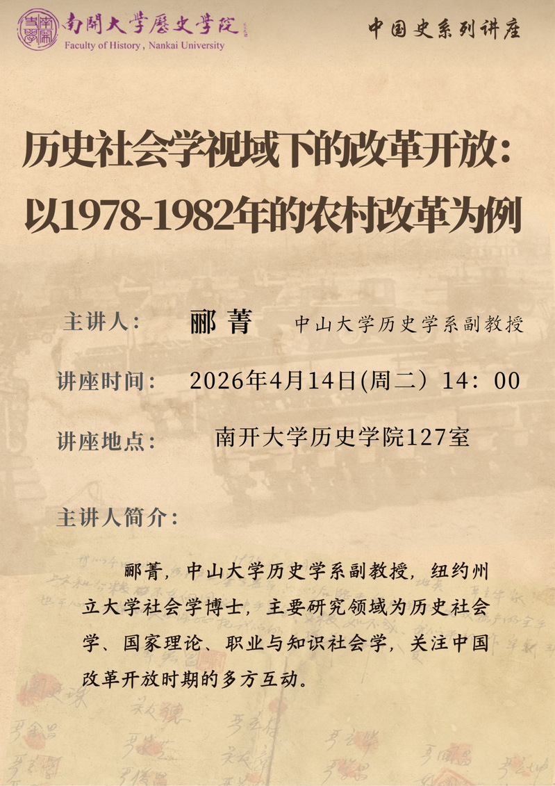 郦菁,中山大学历史学系副教授,纽约州立大学社会学博士,主要研究领域为历史社会学、国家理论、职业与知识社会学,关注中国改革开放时期的多方互动。